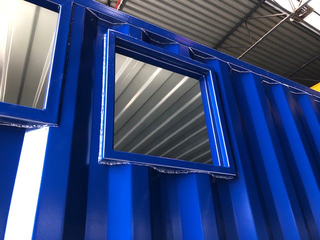 A 20' High Cube container was fitted with openings and checkerboard flooring.